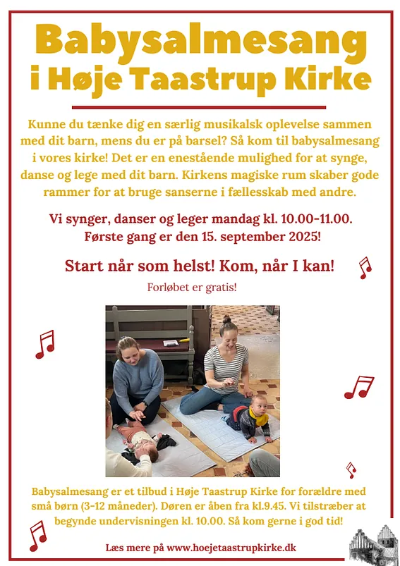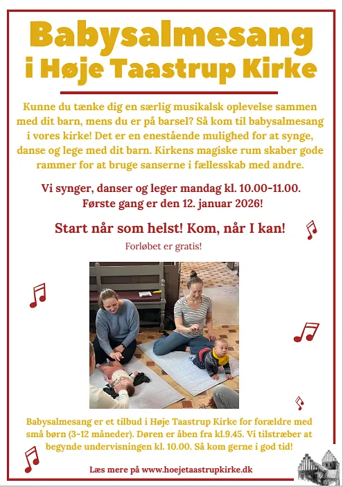 Babysang er et gratis tilbud i Høje Taastrup kirke for forældre med helt små børn (ca. 3-12 måneder)