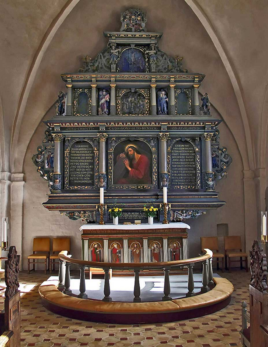 Den altertavle, som nu står i kirken, der delvis lavet af fyr, og den er malet med årstal 1614. Altertavlen er sikkert et københavner-arbejde.